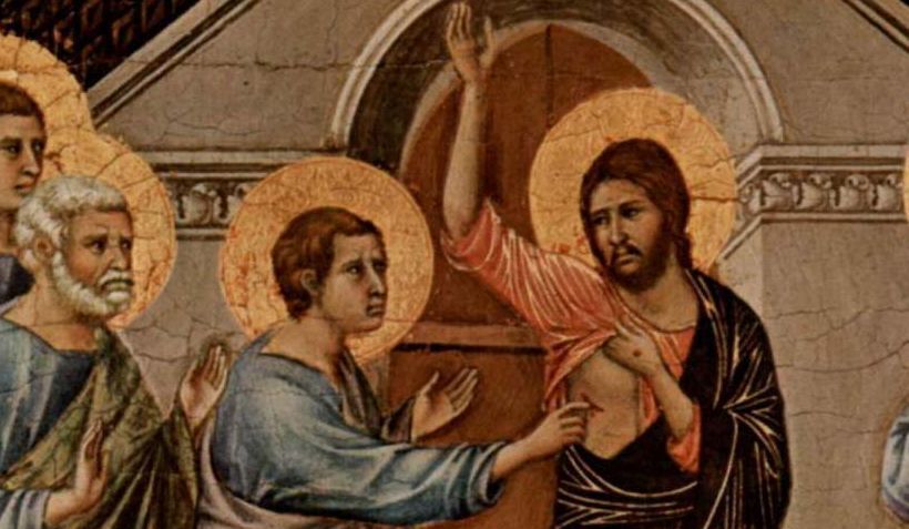 Dzisiaj, po ośmiu dniach, ewangeliczna wersja zapisu dopowiada nam, co stało się tego samego „pierwszego dnia” (J 20, 19) wieczorem. Dopowiada też o spotkaniu zmartwychwstałego Pana z wątpiącym Tomaszem, już „po ośmiu dniach” (J 20, 26). Wielu z uczniów Chrystusa (może jest też tutaj taki), uczniów wszystkich epok, odkrywa w tej postawie wątpiącego Tomasza swój duchowy kształt. „Mędrca – mówią – zdobi wątpienie”. Kiedy Piotr i Jan powiedzieli: „Widzieliśmy Pana!” (J 20, 25a), Tomasz rzekł: „Jeżeli na rękach Jego nie zobaczę śladu gwoździ i nie włożę palca mego w miejsce gwoździ, i nie włożę ręki mojej do boku Jego, nie uwierzę” (J 20, 25b).